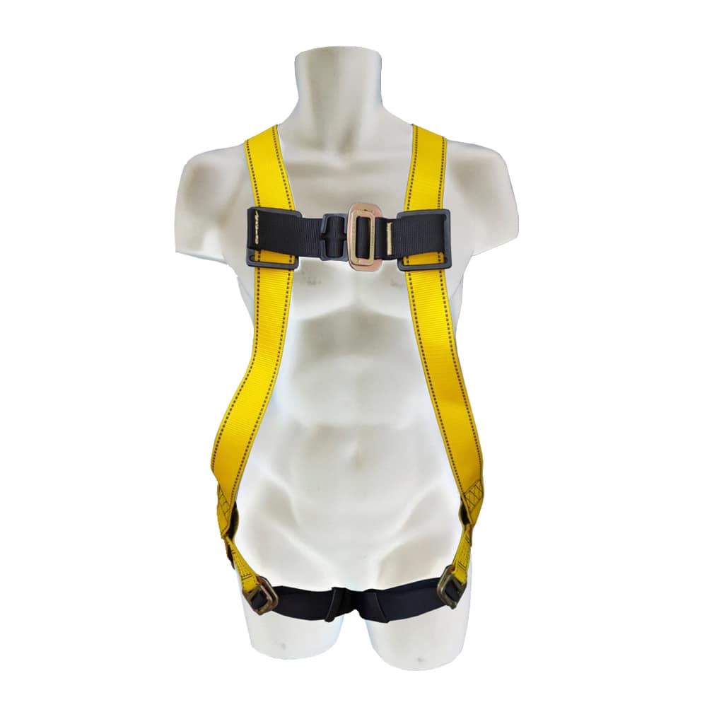 Arnés cuerpo completo, una argolla metálica, con diseño ergonómico desarrollado para distribuir adecuadamente los efectos de la fuerza de detención y minimizar sus consecuencias sobre el usuario, ante una eventual caída de altura.