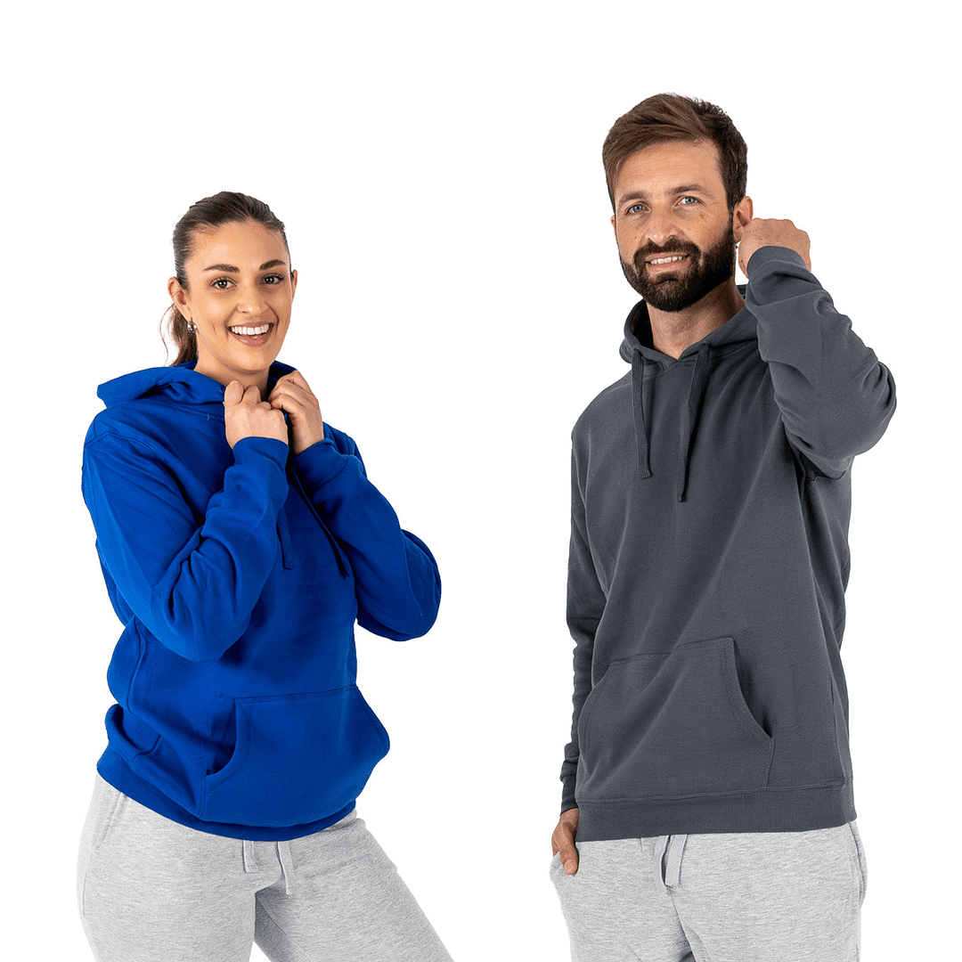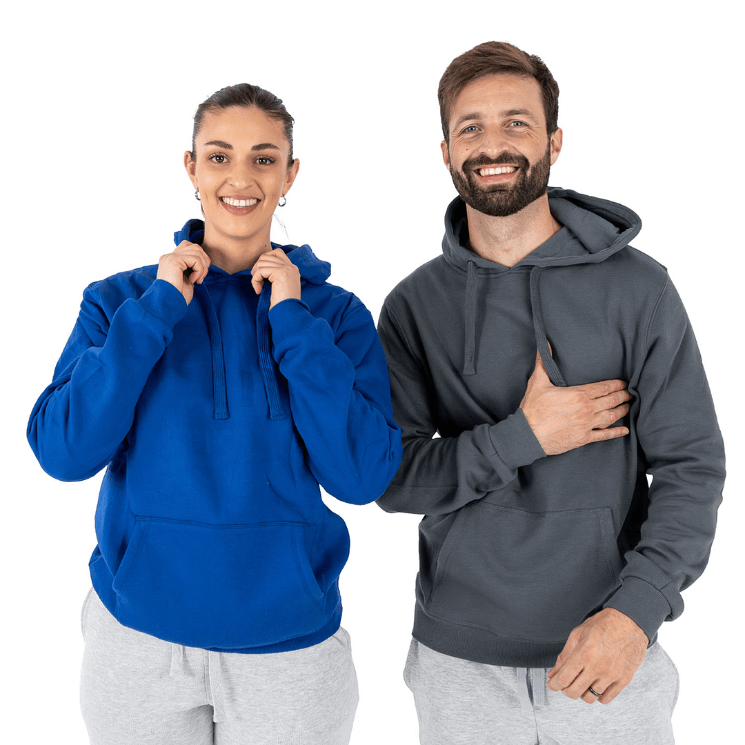 El Canguro Jogging sin Cierre Unisex es la prenda esencial para quienes buscan comodidad, resistencia y versatilidad. Confeccionado en felpa de 280g, combina algodón (35%) y poliéster (65%), lo que garantiza suavidad al tacto, excelente respiración y una alta durabilidad, incluso con uso intensivo y lavados frecuentes.