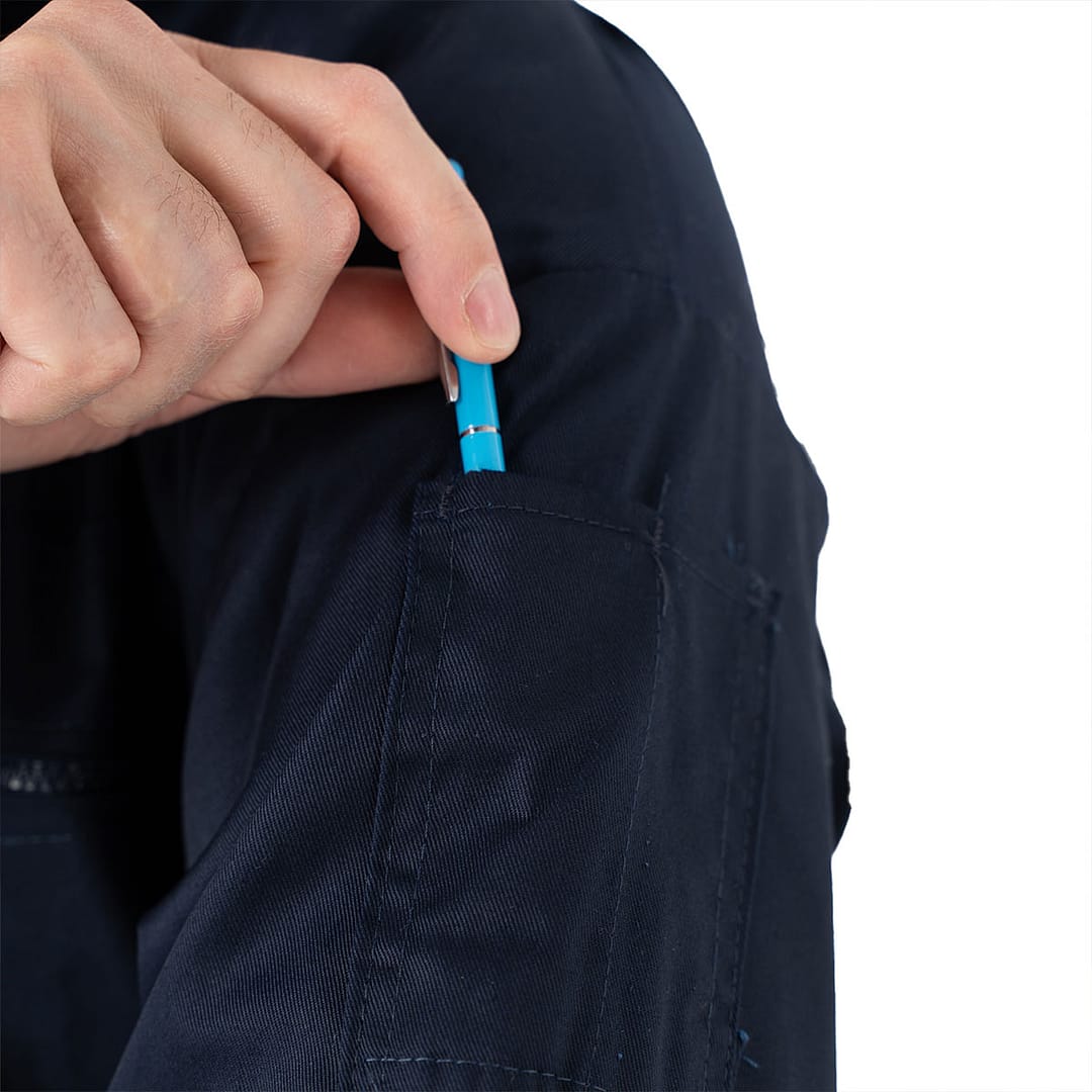 Cierre con doble carro. Cintura elastizada. Puño con ajuste velcro. Pierna baja ajustable con cierre. Bolsillo en manga. Bolsillos delanteros superiores con cierre. Bolsillos parche delanteros inferiores y espalda. Con aplicación de cinta reflectiva de 2″ en pecho y espalda. Con aplicación de cinta reflectiva de 2″ en 360 grados en piernas y brazos.