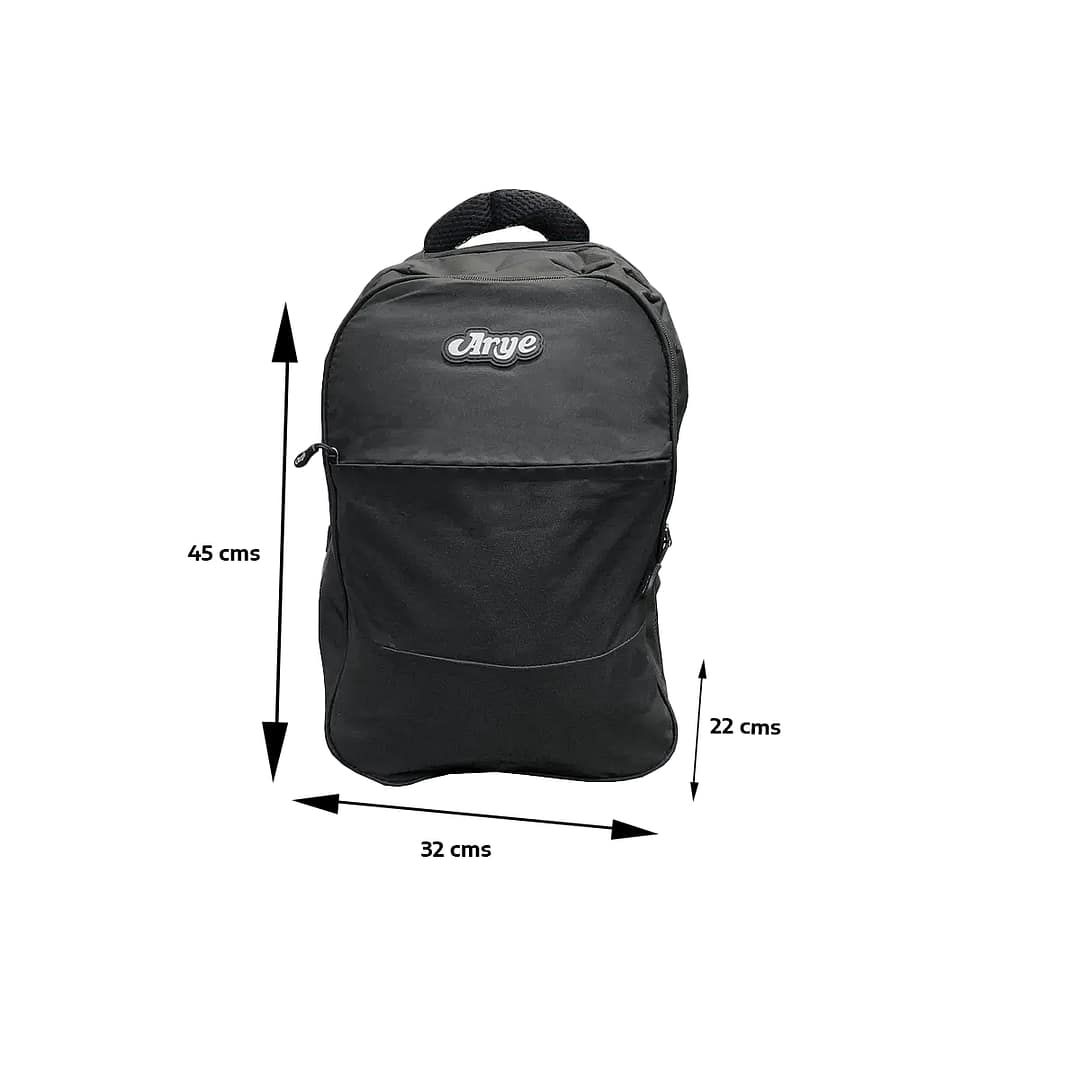 Con Portanotebook. Dos reparticiones frontales grandes con cierre. Bolsillo delantero con cierre.. Dos bolsillos laterales de red con elástico. Regulación de profundidad lateral con hebillas. Manija acolchada y presilla sujetadora superior. Espalda acolchada.