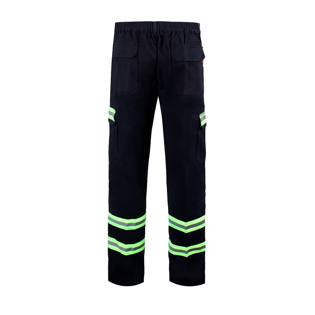 El detalle reflectivo en el pantalón proporciona una mayor visibilidad en condiciones de poca luz, lo que lo convierte en una opción segura para trabajos al aire libre o en entornos con poca iluminación. Con un tiro medio, este modelo se ajusta perfectamente al cuerpo, garantizando libertad de movimiento sin sacrificar el estilo.
