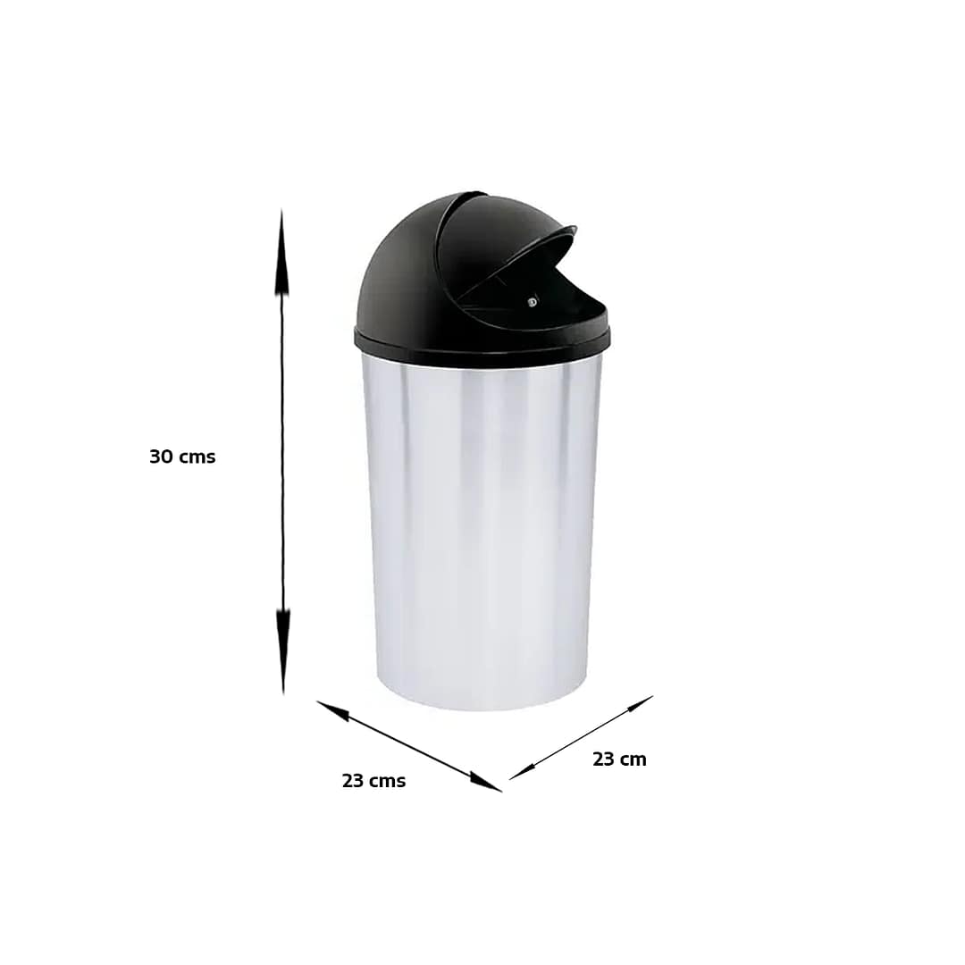 Su apariencia metalizada permite que se adapte en todas las decoraciones de su hogar u oficina. La caneca o cubo de basura de 10 litros cuenta con una tapa móvil que abre y cierra, lo cual evita que se salgan los malos olores.