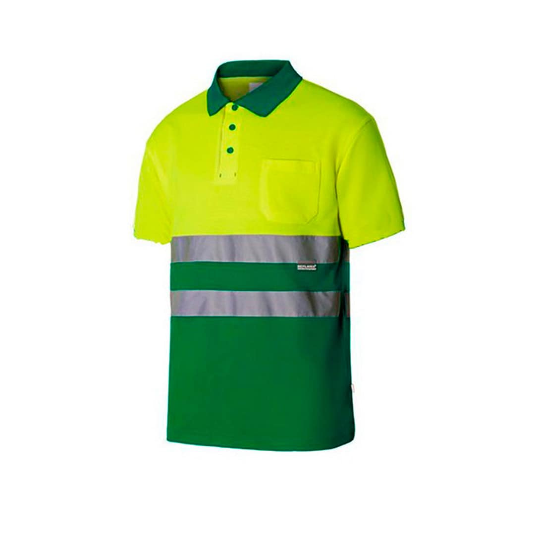 Remera estilo polo manga corta, doble reflectivo, 100% Polyester